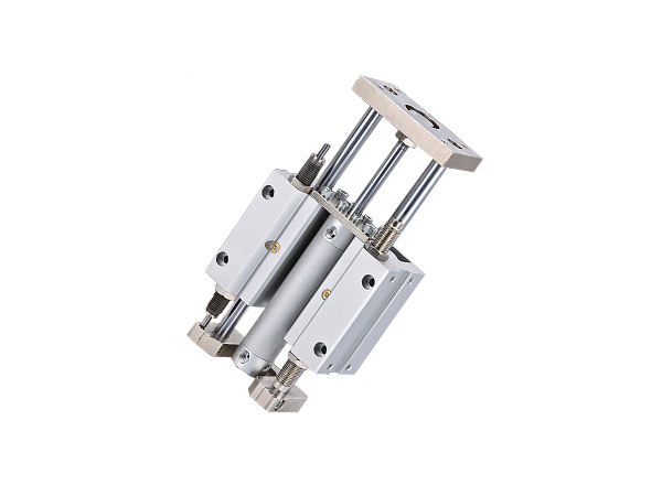 帶導桿氣缸:將與活塞平行的兩根導桿與氣缸組成一體。結(jié)構(gòu)緊湊,導向精度高,能承受較大的橫向負載和力矩。采用了端鎖,即使沒有氣源也能保持氣缸的位置,有兩種類型導桿軸承滑動軸承—耐磨性及抵御重載能力強,球軸承—高精度,操作平穩(wěn)。